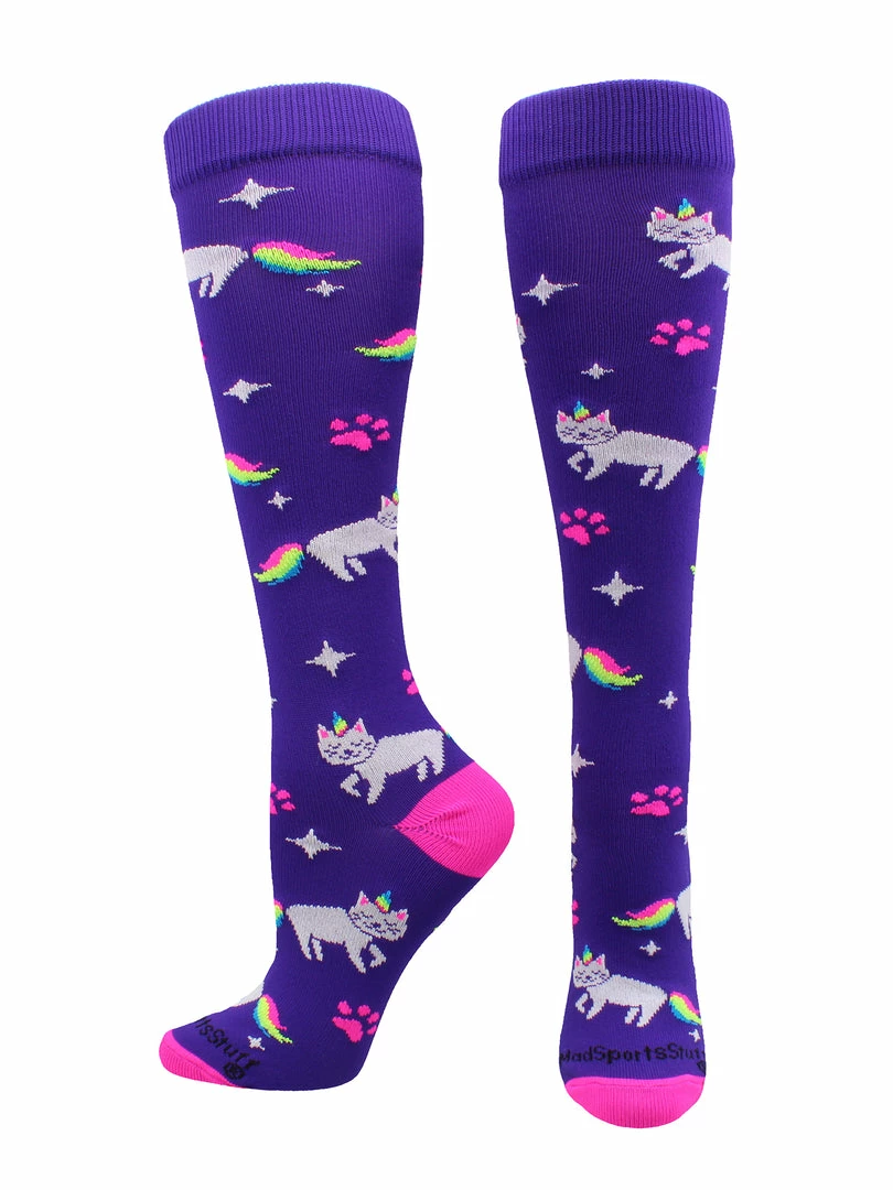 - PERFECT SPORTS SOCKS: Half cat, half unicorn – meet Caticorn, a rarely seen, elusive creature that lives with the fairies and gnomes in the lush forested hills of Ireland! Great for softball, field hockey, soccer, volleyball, lacrosse, basketball, fashion and more!!