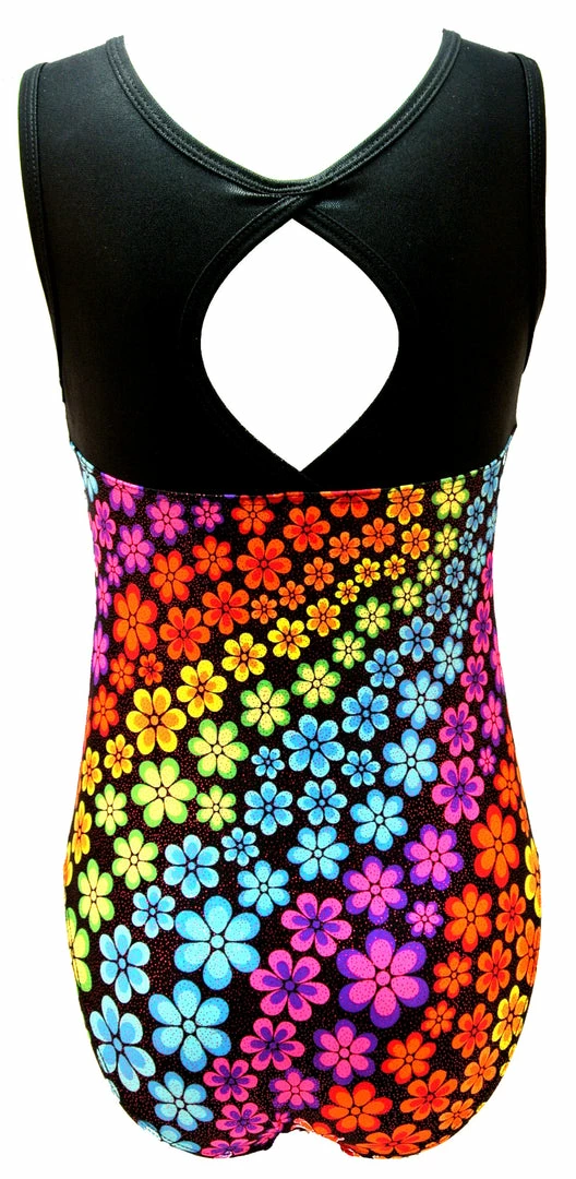 Brand new ๐ŸŽ‰ MadSportsStuff Keyhole Style Rainbow Flowers ๐Ÿ‘ง Girls Gymnastics Leotard Leotards ๐Ÿ””