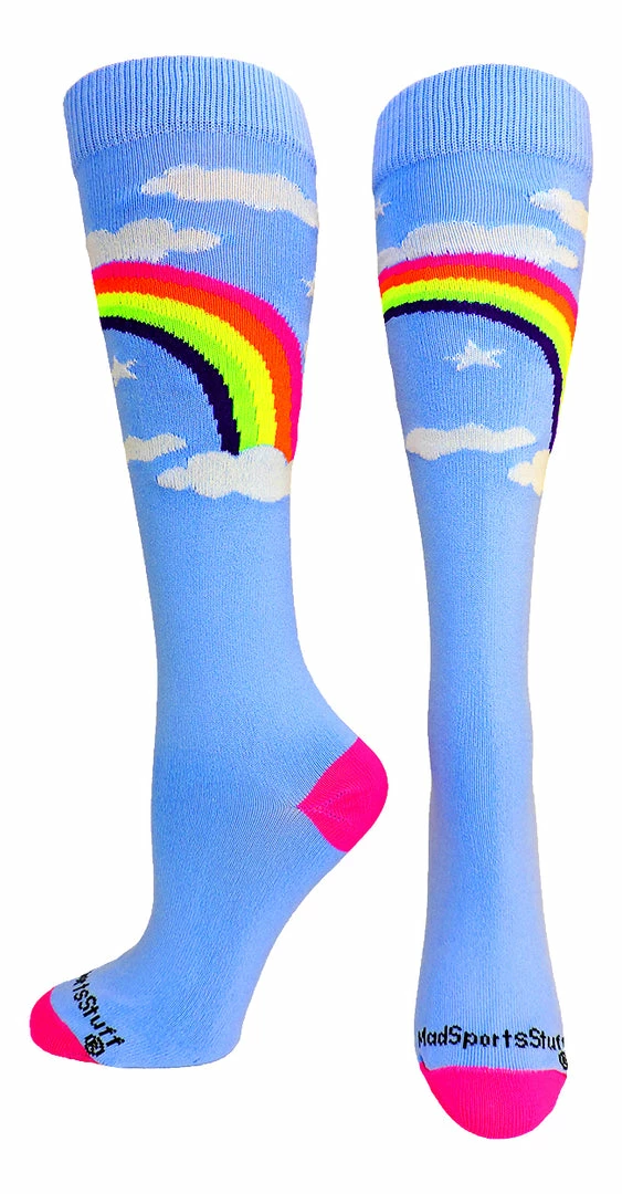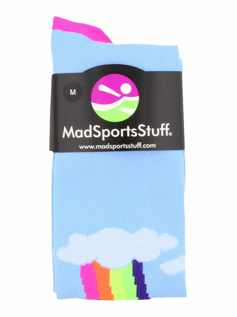 MadSportsStuff Neon Rainbow Clouds Over the Calf Athletic Socks. High performance athletic socks for all team sports and elite athletes.