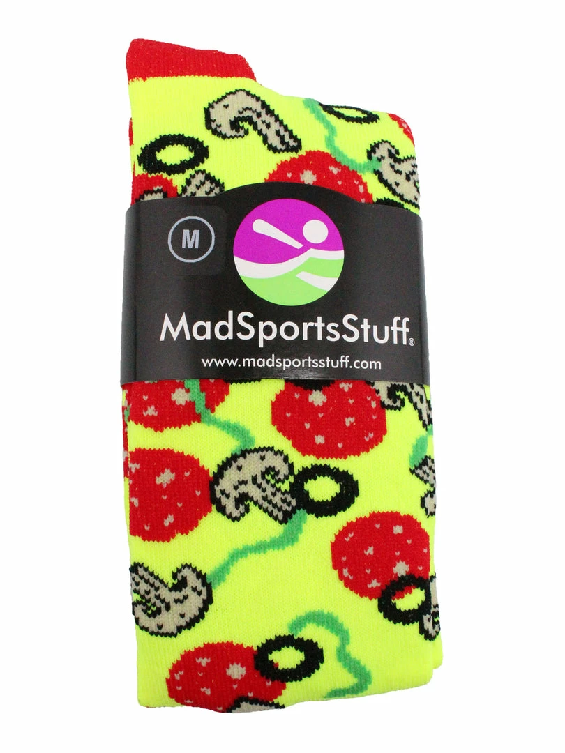 - PERFECT SPORTS SOCKS: Show your inner cheese lover while wearing these pizza socks featuring olives, mushrooms, green pepper and pepperoni. Great for softball, basketball, field hockey, soccer, volleyball, lacrosse, t-ball and more!!