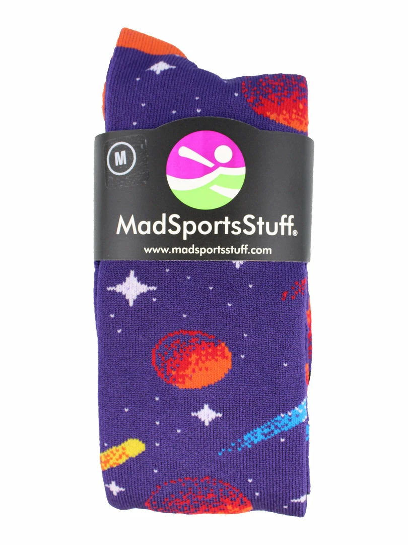 - PERFECT SPORTS SOCKS: Stand out on the field or court with these outer space galaxy socks featuring a planets, stars and shooting stars! Great for fashion or for any space enthusiast who plays Our galaxy socks are ideal for softball, baseball, lacrosse, basketball, field hockey, volleyball, wrestling, soccer, football, cheer, kickball and more!