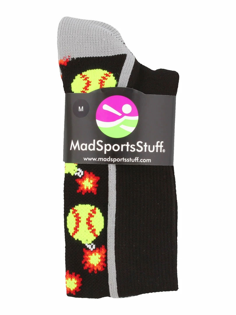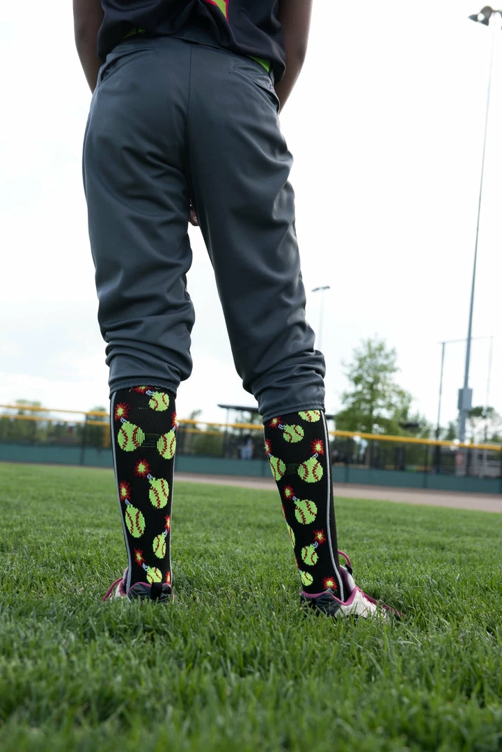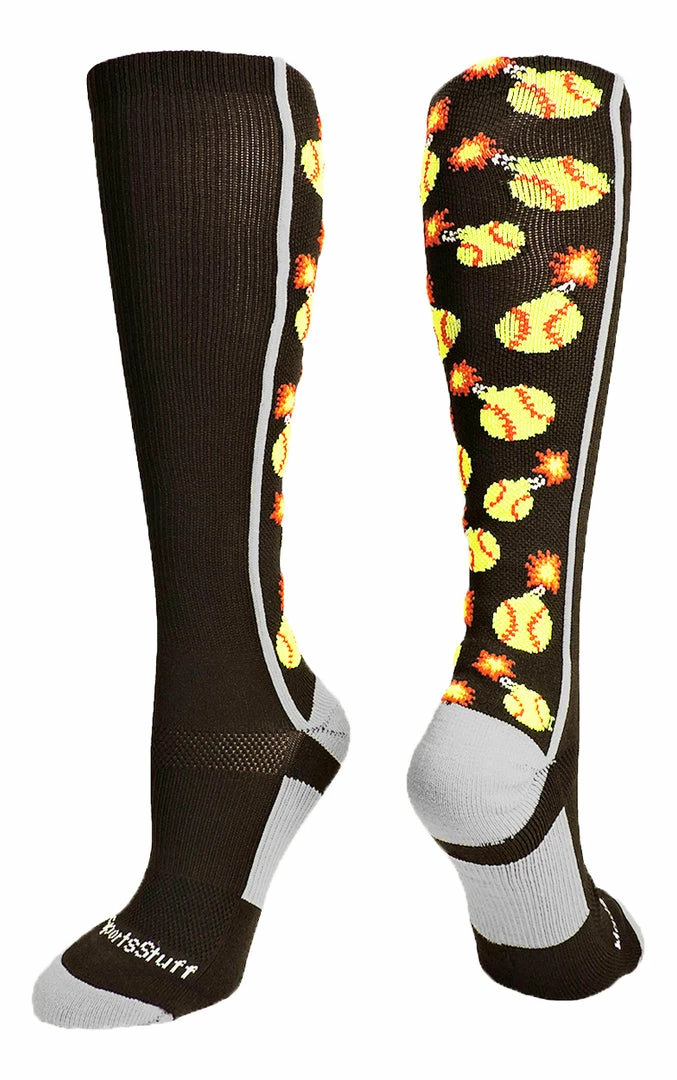 - PERFECT SPORTS SOCKS: These socks have softballs shaped as bombs, lit up, in an over the calf length. Great for teams such as Softball Bombers, Softball Bombs, Firecrackers, or for some super fun, crazy socks to light up the field. Also see our softball bomber headbands.