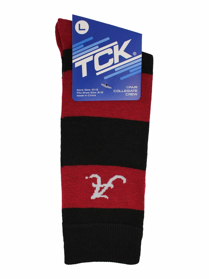 Show your school spirit in the office, at a wedding, at the football stadium or basketball game. Soft and durable, these socks let you maintain a professional look while you support your school. Offering comfort, breathability, performance, and durability these high quality University of Alabama Crimson Tide socks are an ideal gift for Father’s Day, birthdays, stocking stuffers or going back to school. These TCK socks are made up of 97% Polyester, 3% Spandex. Roll Tide!