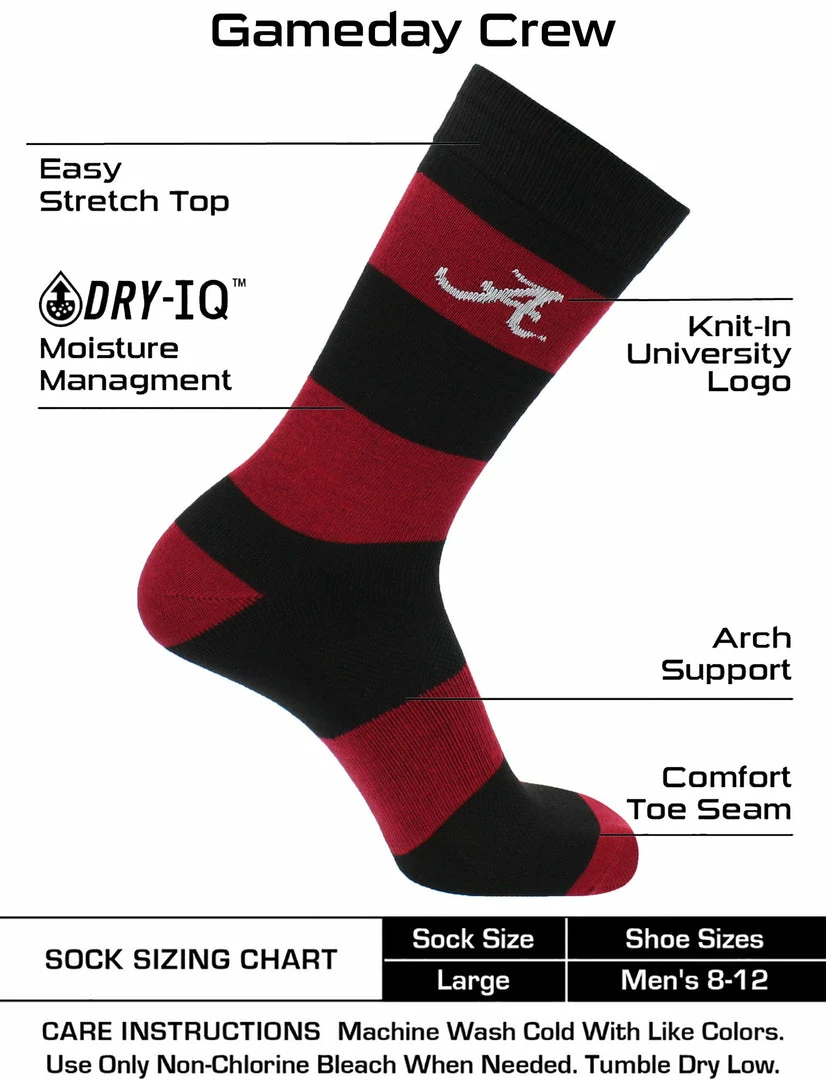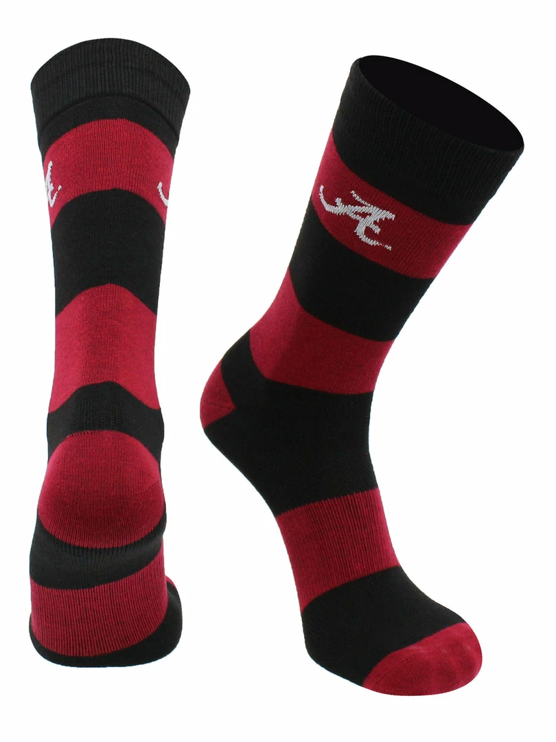- COMFORT AND BREATHABILITY: These premium quality Alabama Crimson Tide striped dress socks provide soft comfort. Moisture management technology pulls moisture and sweat away from skin.