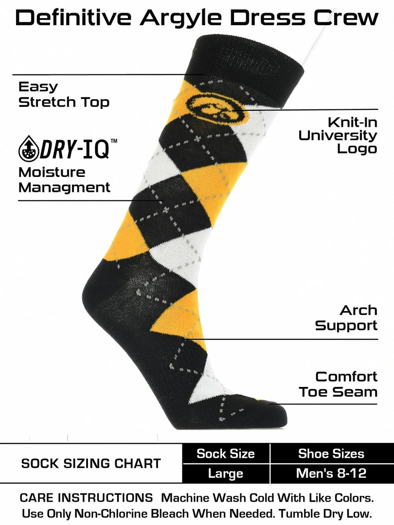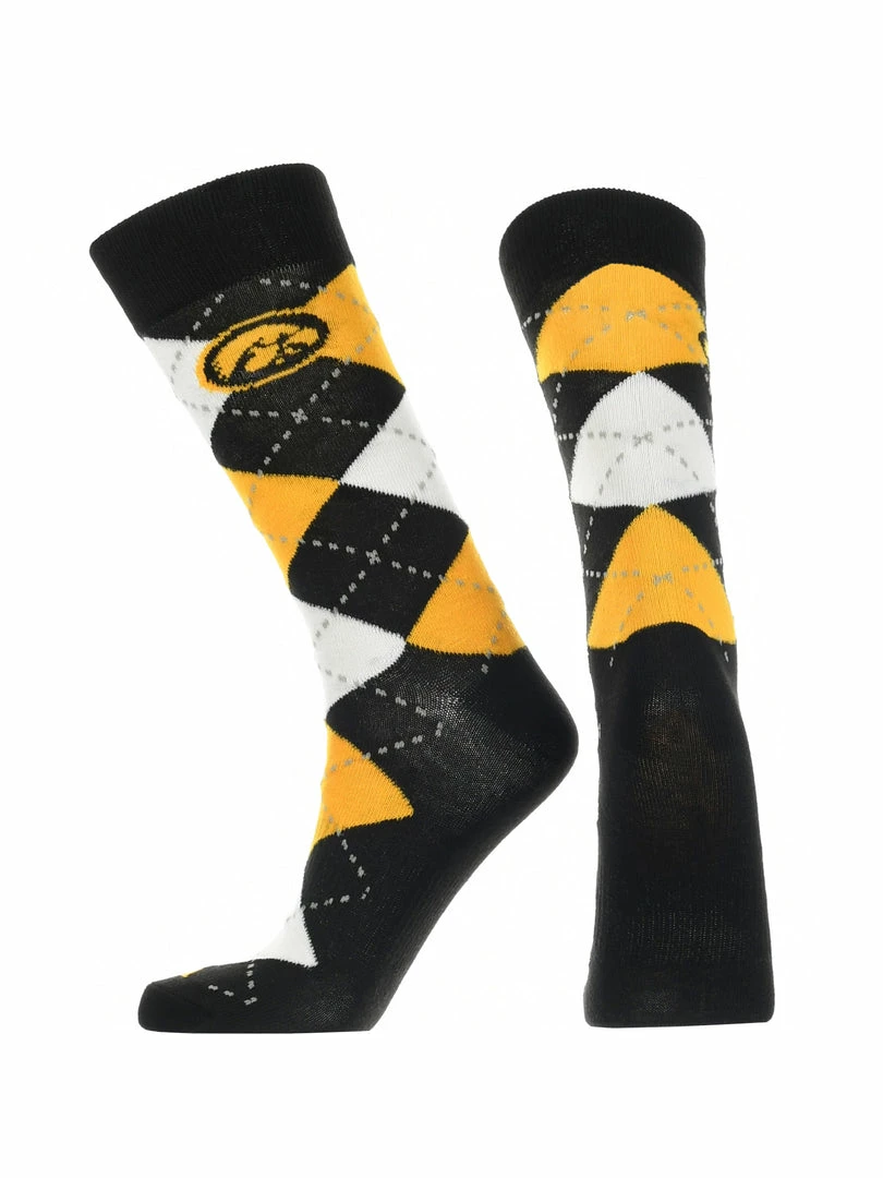 - COMFORT AND BREATHABILITY: These premium quality Iowa Hawkeyes argyle dress socks provide soft comfort. Moisture management technology pulls moisture and sweat away from skin.