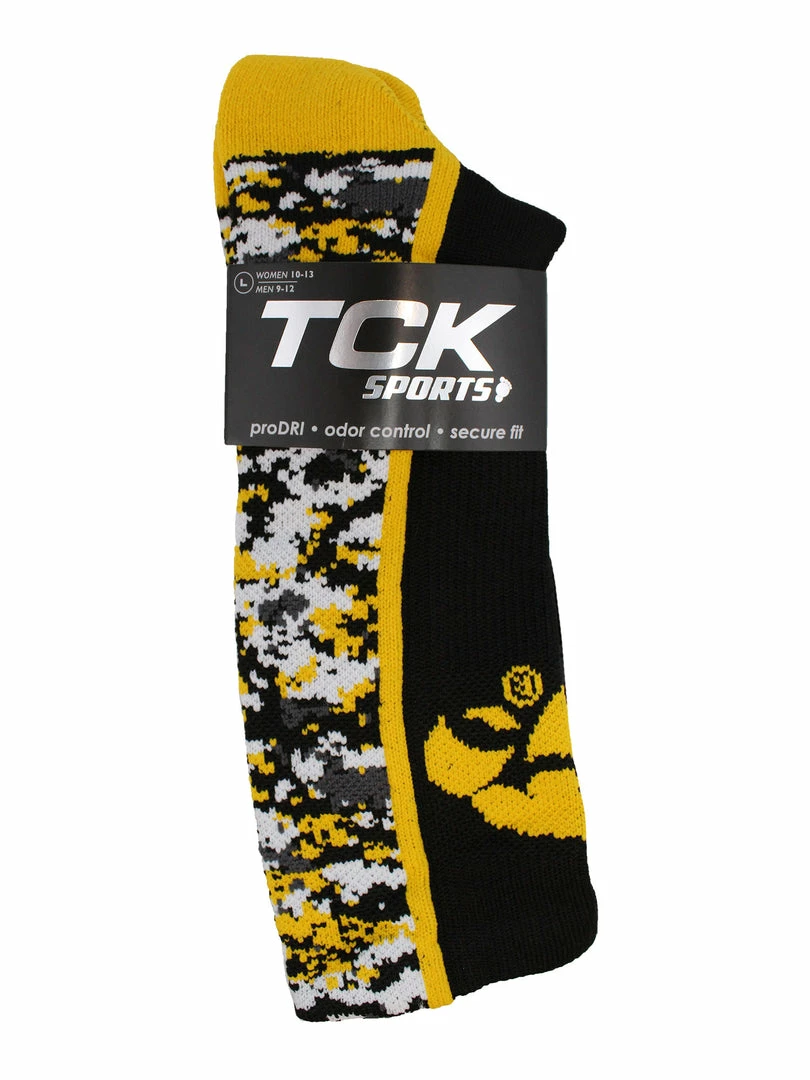 - COMFORT AND BREATHABILITY: These premium quality Iowa Socks provide soft comfort. Mesh panel ventillation above the foot allows for proper air flow. Keeping the feet dry. Moisture management technology pulls away moisture from skin.