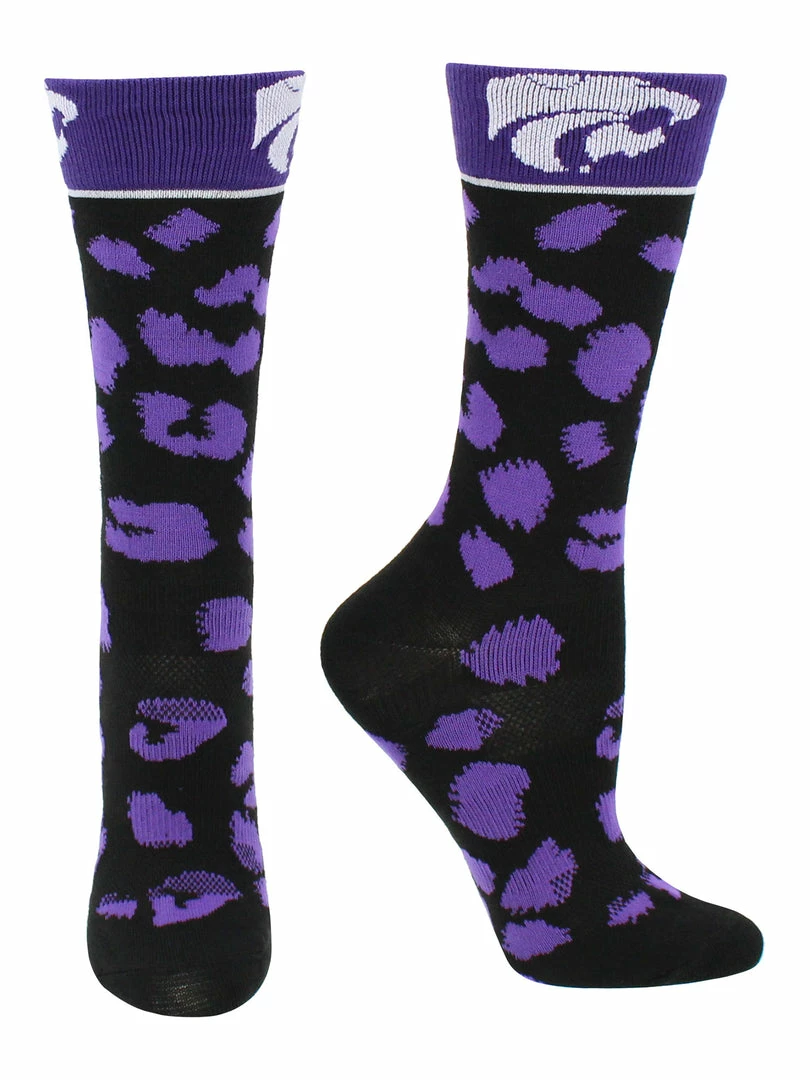 - COMFORT AND BREATHABILITY: These premium quality Kansas State Wildcats leopard print casual socks provide soft comfort. Moisture management technology pulls moisture and sweat away from skin.