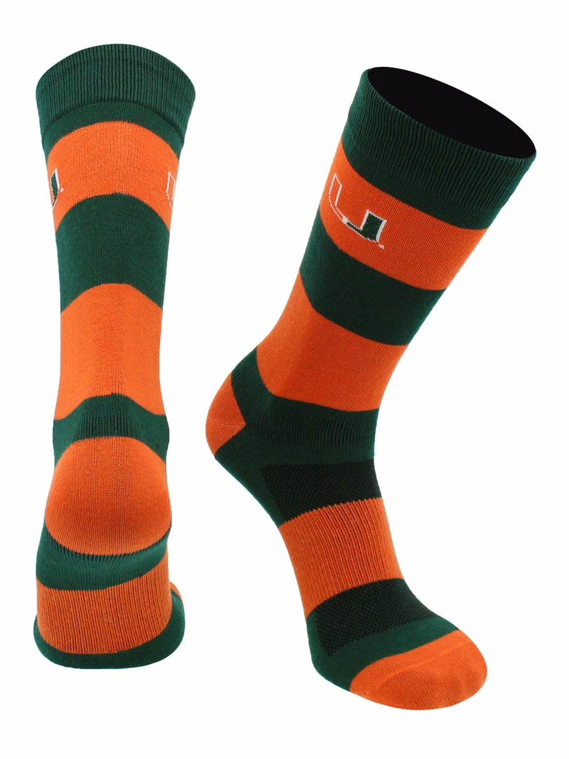 - COMFORT AND BREATHABILITY: These premium quality Miami Hurricanes striped dress socks provide soft comfort. Moisture management technology pulls moisture and sweat away from skin.