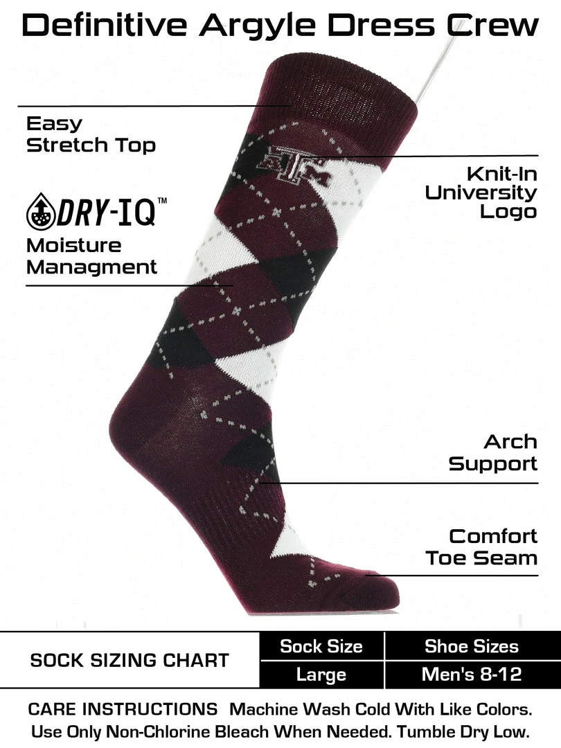 - COMFORT AND BREATHABILITY: These premium quality Texas A&M Aggies argyle dress socks provide soft comfort. Moisture management technology pulls moisture and sweat away from skin.