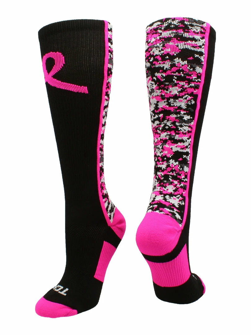 - HIGH PERFORMANCE AWARENESS SOCKS: Support Breast Cancer Awareness with these athletic over the calf socks. These socks hit just below the knee and feature a Pink Ribbon on the side. These socks are great for boys or girls and are ideal for football, baseball, softball, basketball, volleyball, cheer, wrestling, lacrosse, flag football and more!