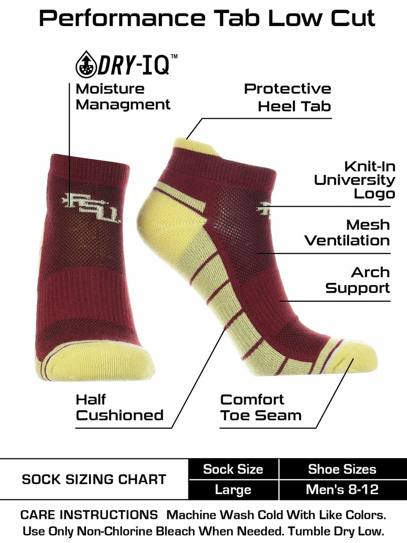 TCK No Show Performance Low Cut Socks are the perfect athletic ankle sock. Wear these to the tailgate party, working out, or lounge around the house. Offering comfort, breathability, performance, and durability these high quality Florida State University Seminoles socks are an ideal gift for Father’s Day, birthdays, stocking stuffers or going back to school. Made of 97% Polyester, 3% Spandex. Gear up for the big game! Go Noles!