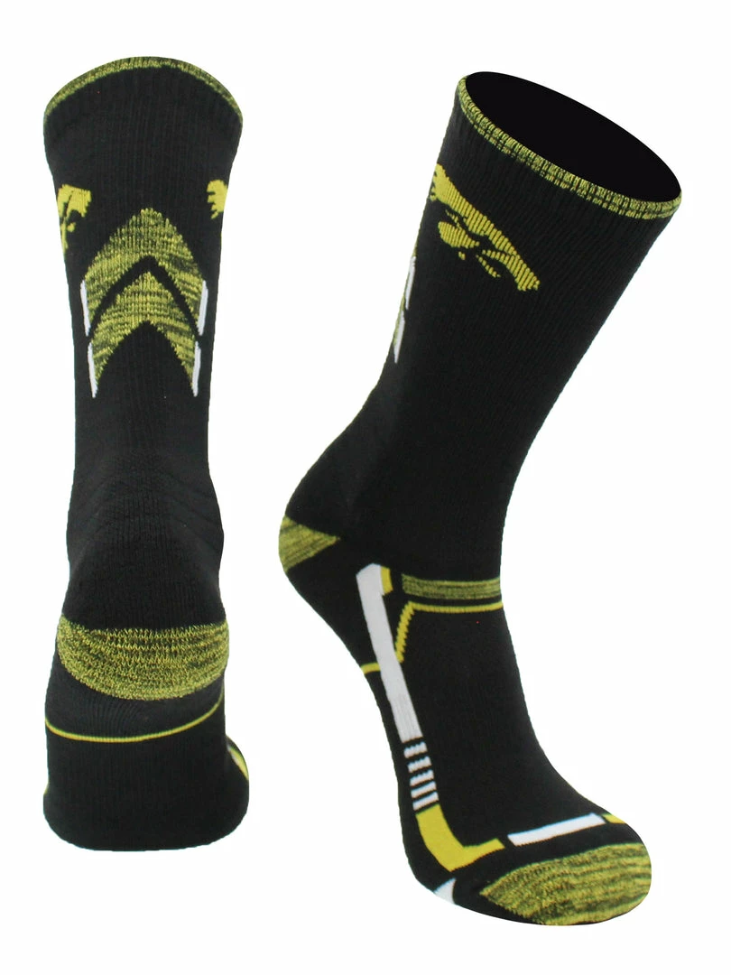 - COMFORT AND BREATHABILITY: These premium quality Iowa socks provide soft comfort. Mesh panel ventillation above the foot allows for proper air flow. Keeping the feet dry. Moisture management technology pulls away moisture from skin.