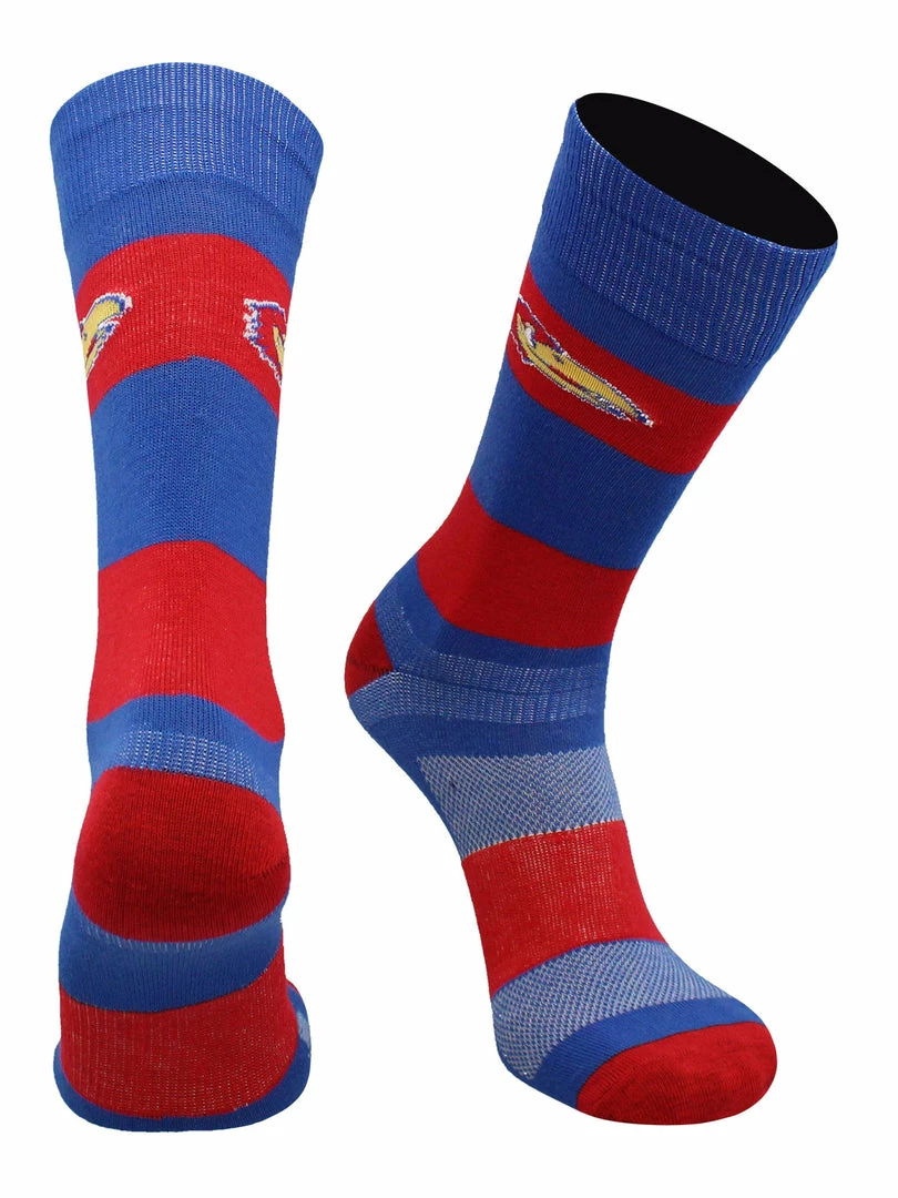 Show your school spirit in the office, at a wedding, at the football stadium or basketball game. Soft and durable, these socks let you maintain a professional look while you support your school. Offering comfort, breathability, performance, and durability these high quality University of Kansas Jayhawks socks are an ideal gift for Father’s Day, birthdays, stocking stuffers or going back to school. TCK Game Day Striped Socks are made up of 97% Polyester, 3% Spandex. Go Jayhawks!