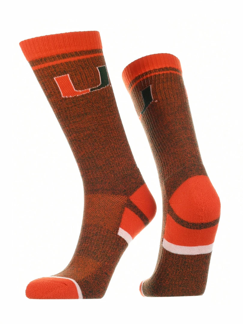 - COMFORT AND BREATHABILITY: These premium quality Miami Hurricanes socks provide soft comfort. Mesh panel ventillation above the foot allows for proper air flow. Keeping the feet dry. Moisture management technology pulls away moisture from skin.