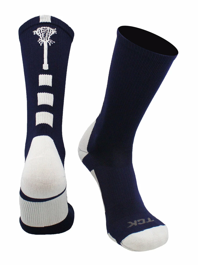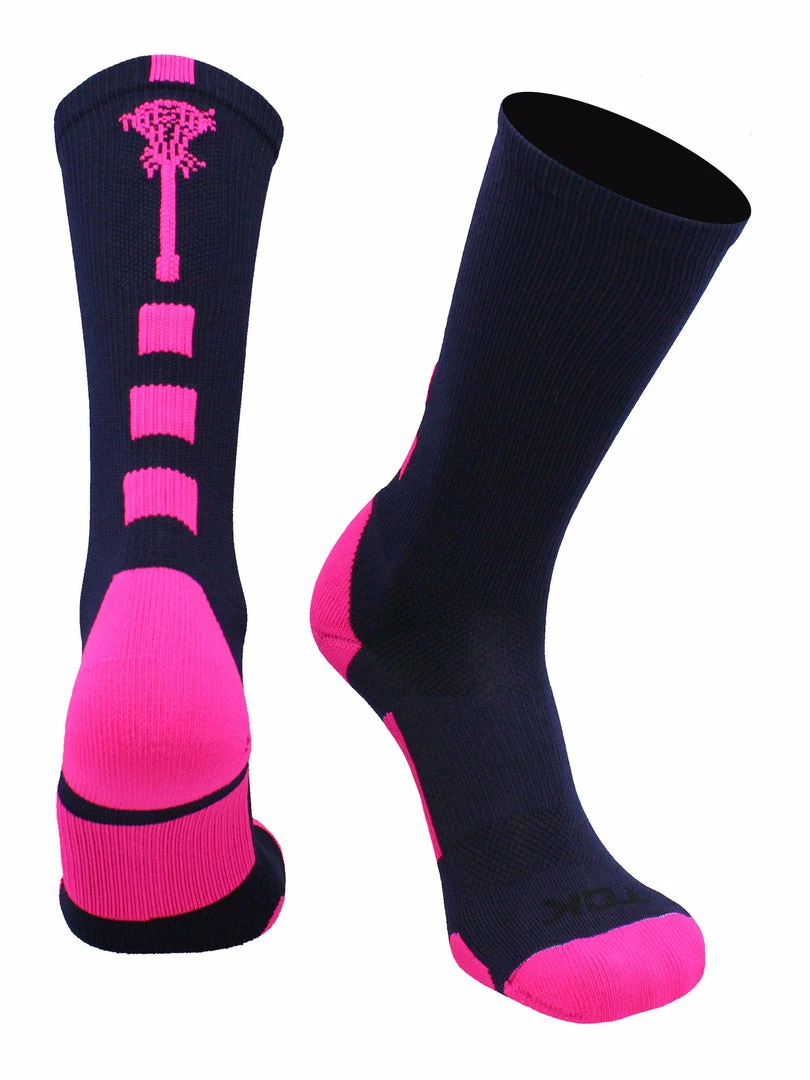 - MIDLINE LACROSSE SOCKS: Stand out on the field or court with these fun lacrosse crew socks. These socks come in over 12 team color combinations using vibrant dyes that do not fade or run. This style sock hits mid-calf and features a lacrosse stick on theย back.ย The simple two color design makes it great for teams or individuals, and boys or girls.