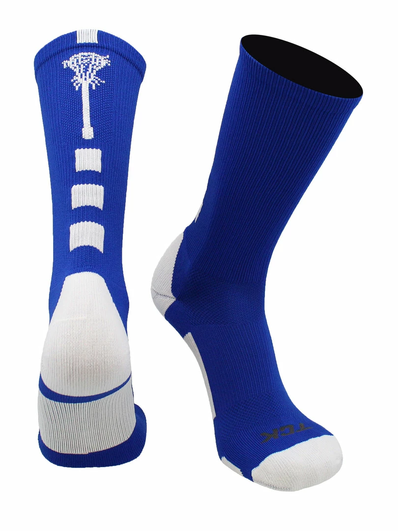 TCK Midline Lacrosse Crew Socks are a must have for your next game, outing, or practice. Featuring moisture control yarns, breathable mesh, ergonomic cushion, arch compression, & a double welt top, they provide maximum athletic performance. These socks are suitable for both boys and girls and come in youth and adult sizes.ย Founded in 1961, TCK socks are manufactured with pride in the USA.