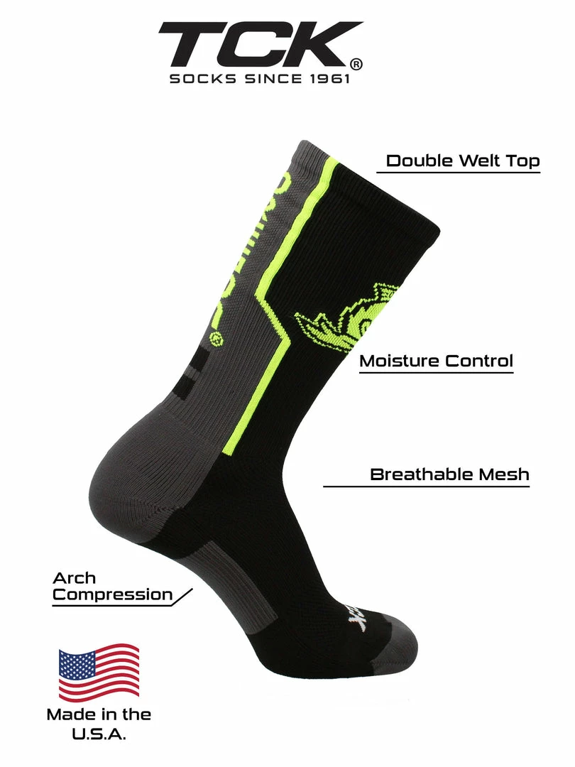 - COMFORT AND BREATHABILITY: These premium quality Oregon Socks provide soft comfort. Mesh panel ventillation above the foot allows for proper air flow. Keeping the feet dry. Moisture management technology pulls away moisture from skin.