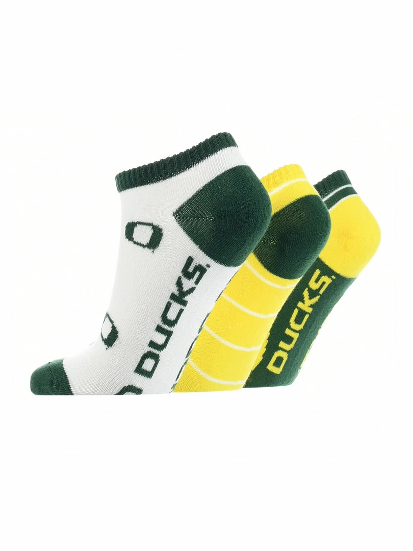 TCK Full Field, No Show Socks come with 3 pairs of comfy socks. Get ready to cheer on your favorite team during the season! Wear these to the tailgate party, working out, or lounge around the house.Offering comfort, breathability, and durability these high quality University of Oregon Ducks socks are an ideal gift for birthdays, stocking stuffers or going back to school. Made of 97% Polyester, 3% Spandex. Gear up for the big game! Go Ducks!