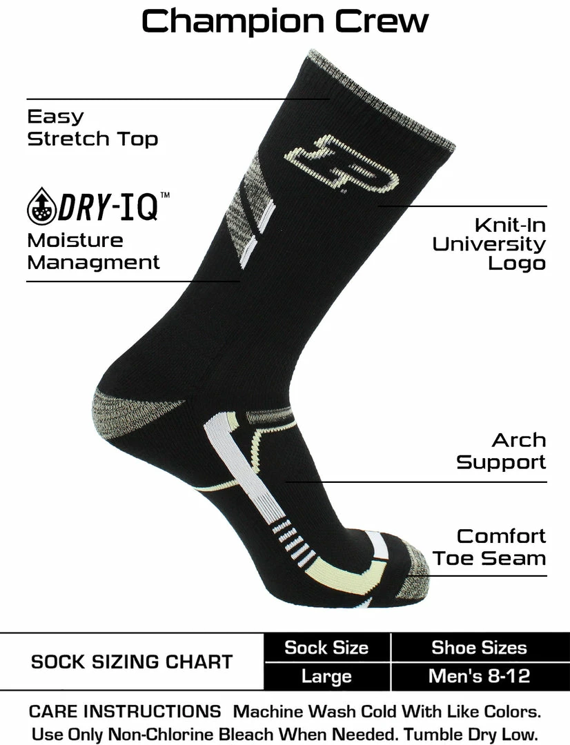 - COMFORT AND BREATHABILITY: These premium quality Purdue socks provide soft comfort. Mesh panel ventillation above the foot allows for proper air flow. Keeping the feet dry. Moisture management technology pulls away moisture from skin.