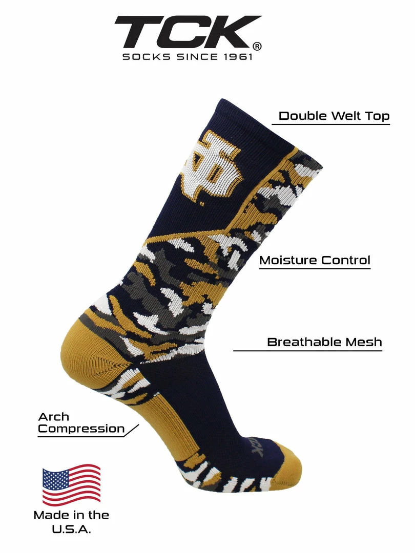 Cheap ๐Ÿ˜ TCK University Of Notre Dame ๐Ÿงฆ Socks Fighting Irish Woodland Camo Crew Length ๐Ÿ˜€