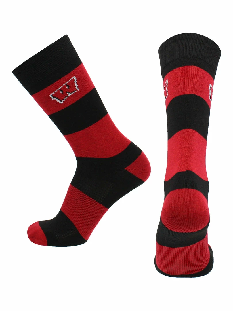 - COMFORT AND BREATHABILITY: These premium quality Wisconsin Badgers striped dress socks provide soft comfort. Moisture management technology pulls moisture and sweat away from skin.