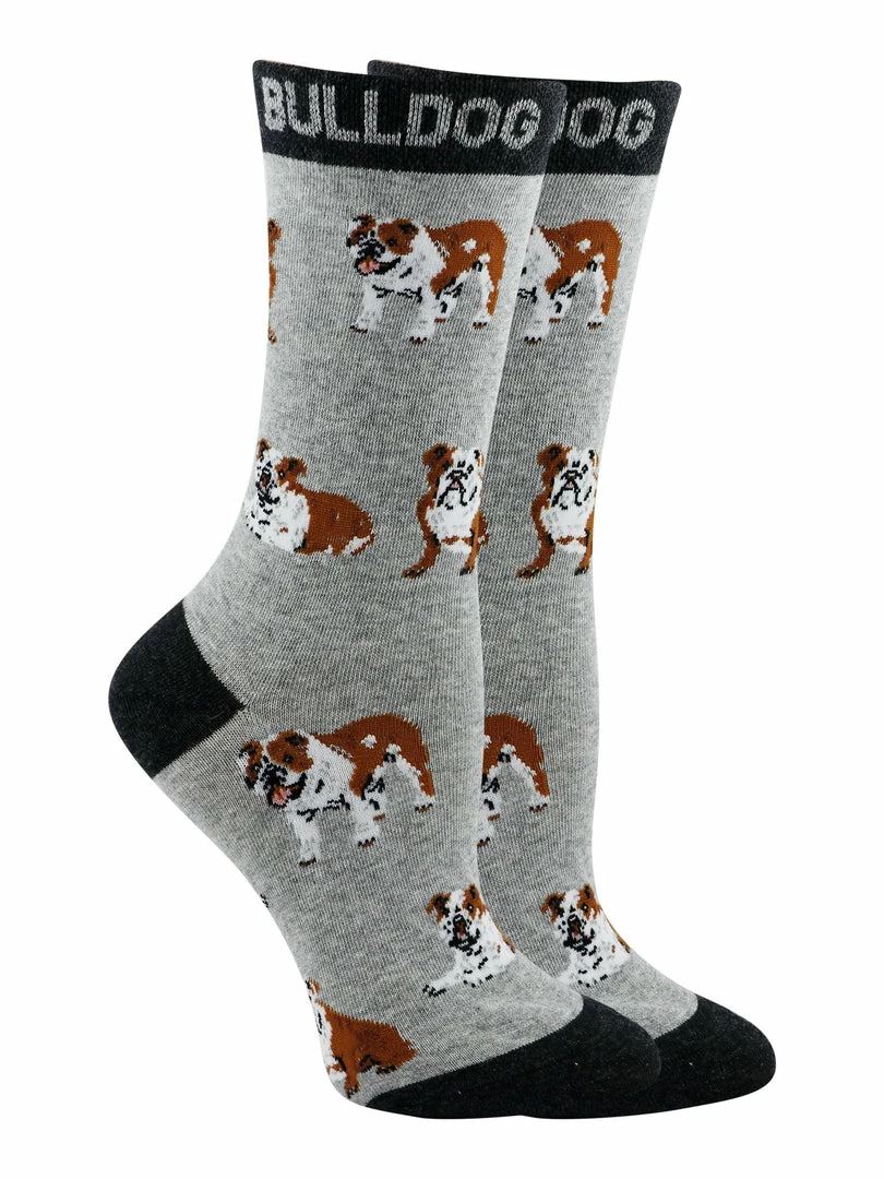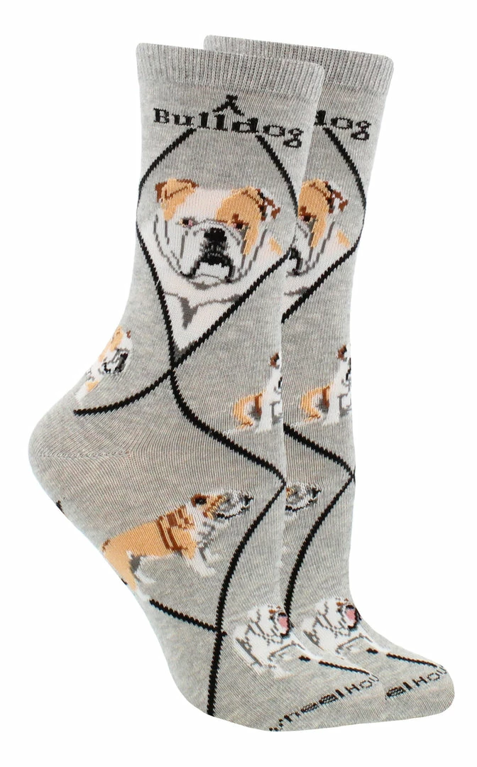 - PERFECT FOR DOG LOVERS – Did you know the American Bulldog can jump six feet in the air? It is stocky, agile, and built for hard work. Honor yours by wearing the Wheel House crew sock that features an American Bulldog design.