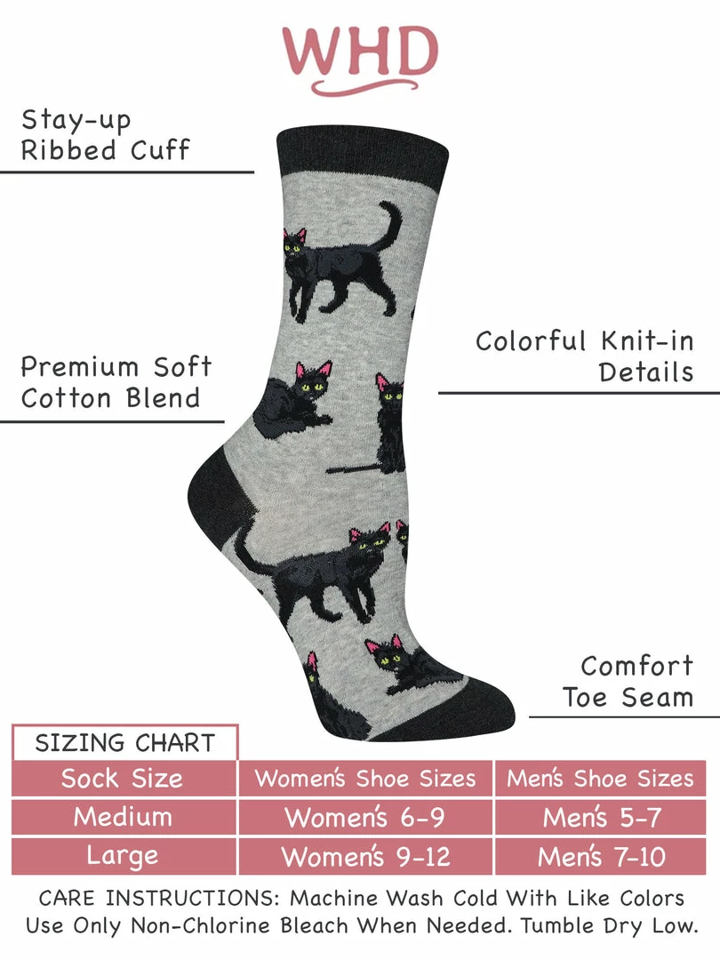 - PERFECT FOR ANIMAL LOVERS – Our black cats aren’t bad luck. Purr-haps these are the socks you’ve been looking for! These Black Cat crew socks from Wheel House Designs are sure to bring a smile to your feet.