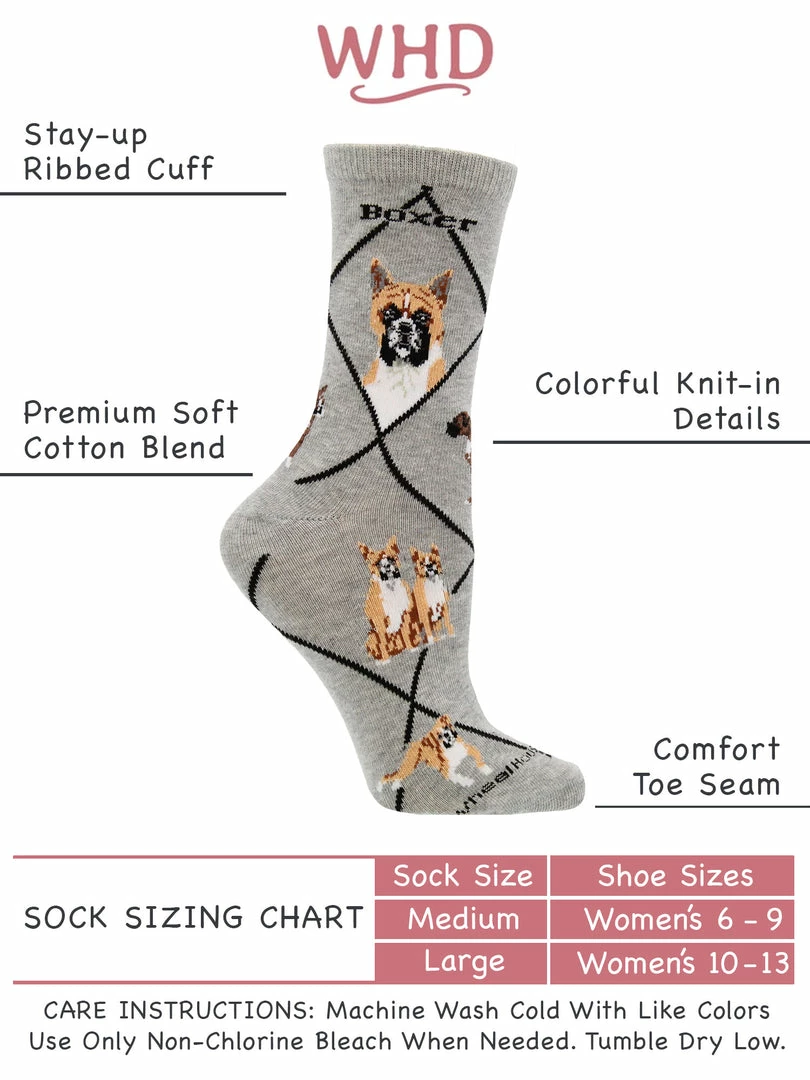 - PERFECT FOR DOG LOVERS – Originally bred in Germany, the Boxer is one of the sweetest, short-haired dog breeds that is truly man’s best friend. These gentle creatures will melt your heart. Wear them on your feet with the WHD classic Boxer crew sock and diamond pattern.