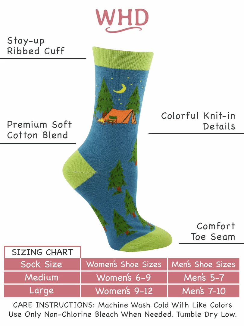 - PERFECT FOR OUTDOORS LOVERS – There’s something carefree about camping and being in an environment that’s full of life and beauty. Toss on these Wheel House Design camping crew socks and head for the hills.