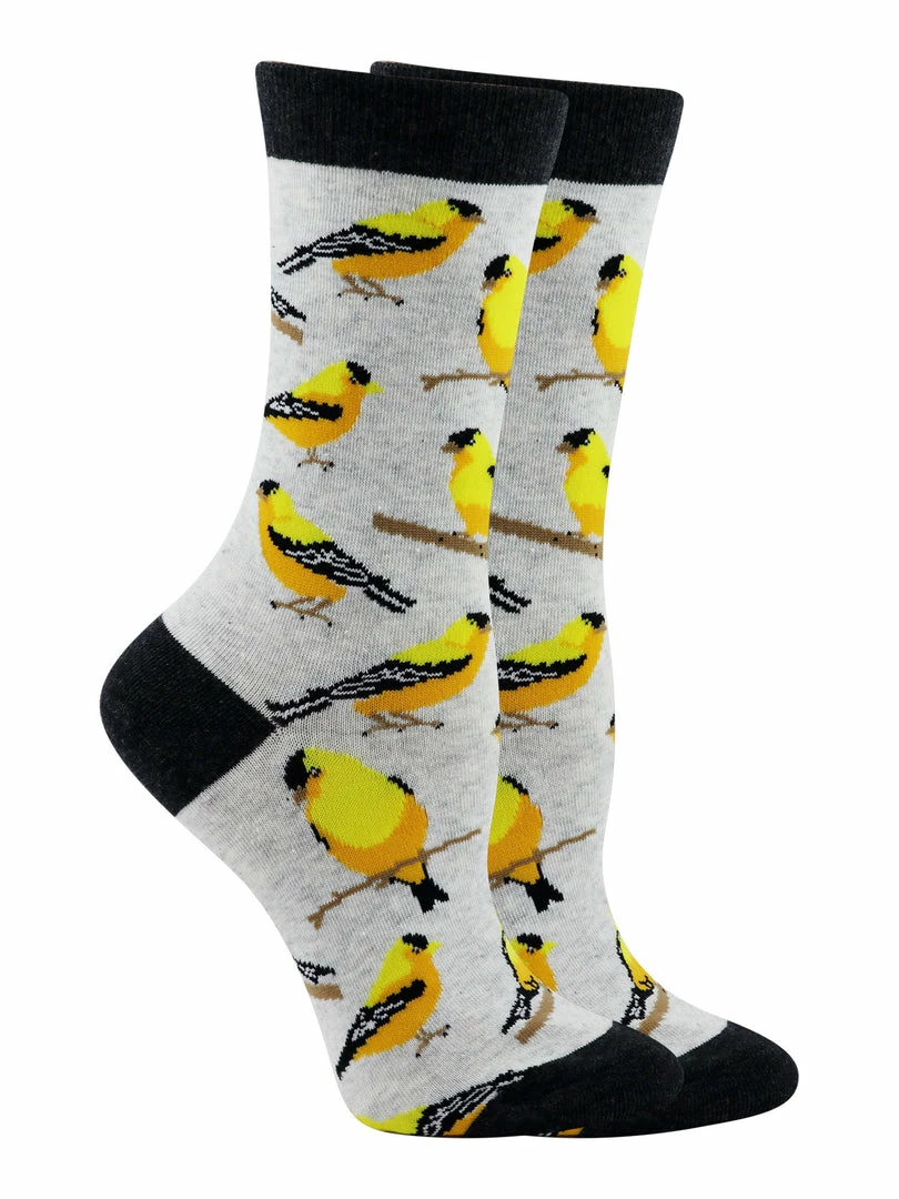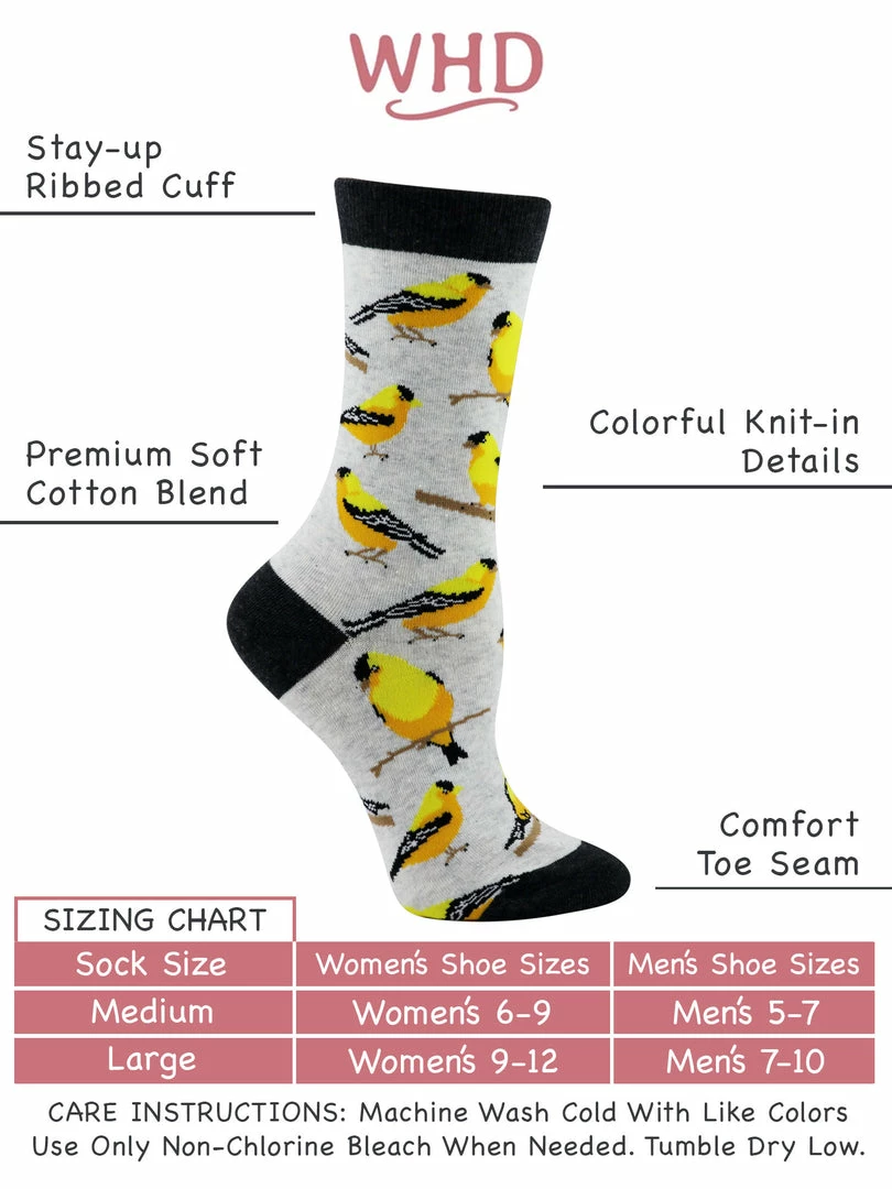 - PERFECT FOR BRID LOVERS – The American Goldfinch is an outgoing bird! With it’s “per-twee-twee-twee” call and its bright yellow feathers, it’s not to be missed. Now you can be outgoing with the Wheel House Designs crew sock.
